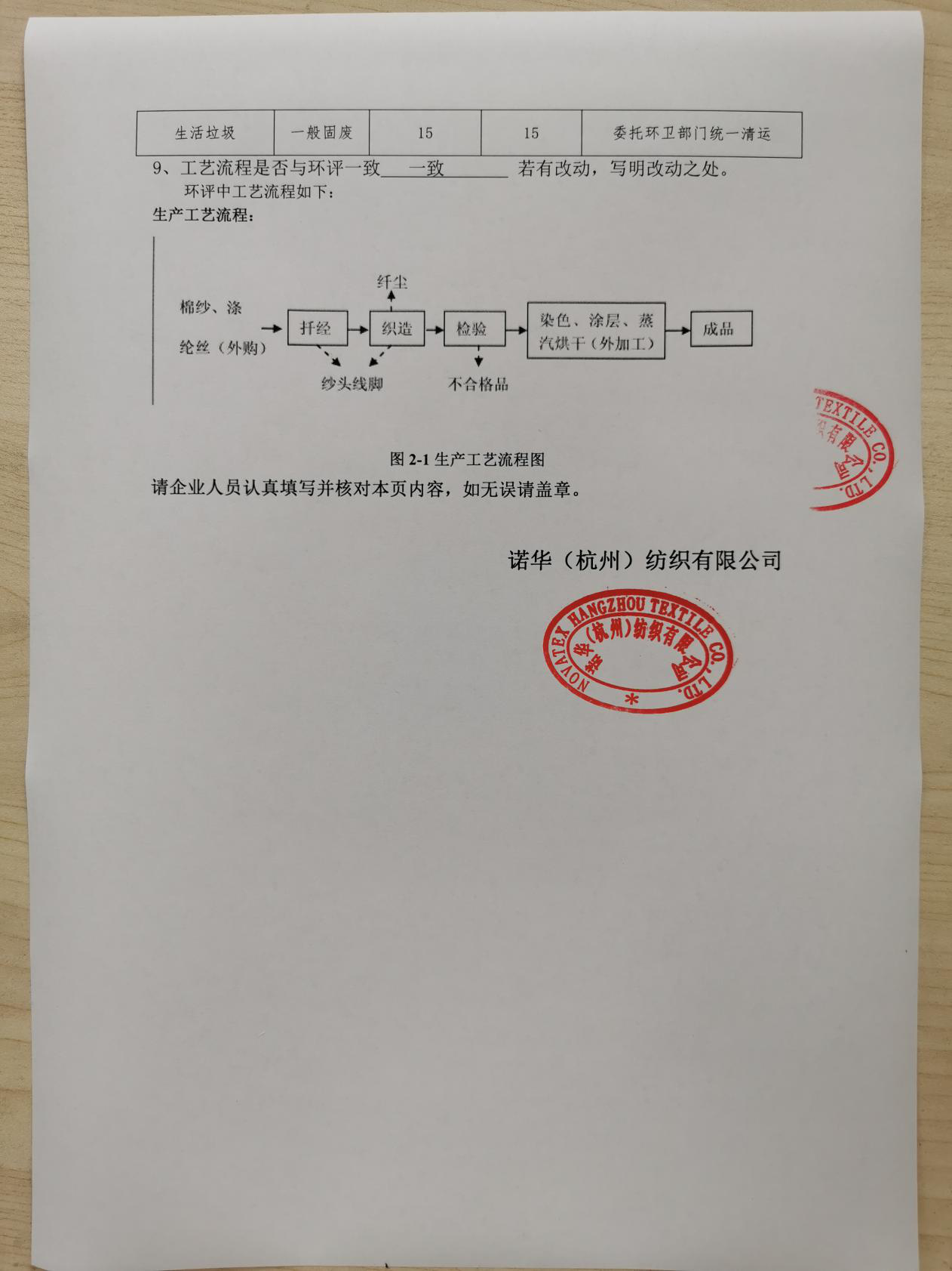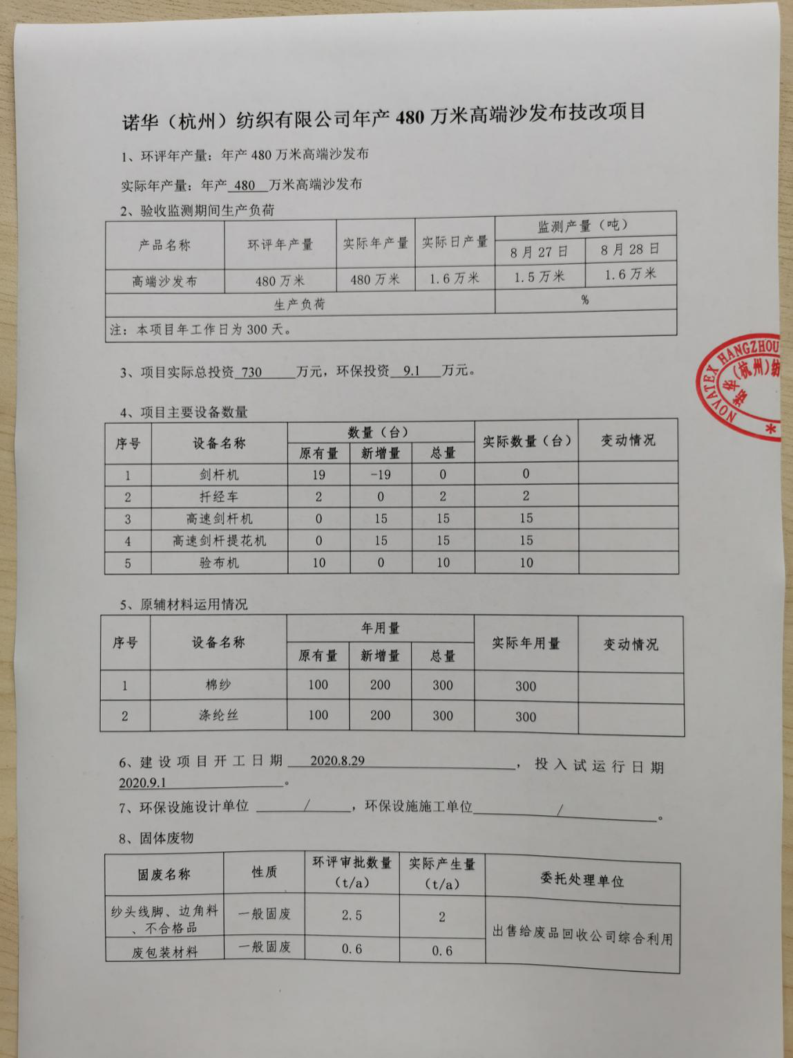 諾華(杭州)紡織有限公司年產(chǎn)480萬米高端沙發(fā)布技改項(xiàng)目竣工環(huán)境保護(hù)驗(yàn)收監(jiān)測(cè)報(bào)告表